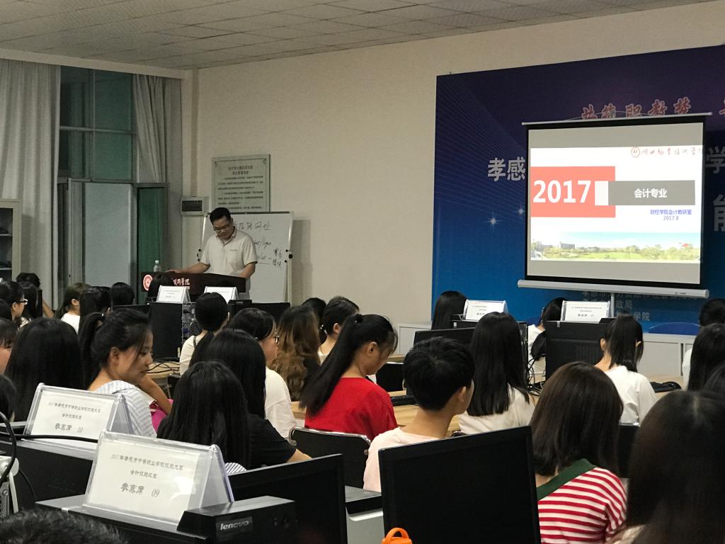 九月十三日晚七点,在文华楼三楼会计综合实训室,开云kaiyun官方网站举办新生专业认知系列教育的第二场活动,即会计专业介绍会。杨相栋主任向全体会计专业新生详细介绍了我校会计专业建设和发展情况。杨主任通过经典案例,告诉同学们,在校期间,同学们学什么、怎么学。会计专业骨干教师周雪艳、黄文军也结合各自教学实践,从不同侧面向刚入学的同学们讲述了会计的精彩生活。现场同学纷纷被老师所讲的内容吸引,热情高涨,认真听、努力记,会场不时爆发出阵阵掌声。开云kaiyun官方网站院长卢珍宏,副院长喻靖文全程参加了这一活动。本次专业介绍会是大一新生来到开云kaiyun官方网站后第一次接触有关专业方面的知识,在老师的介绍下对本专业的概况和自己未来的学习方向有所了解,相信也对同学们大学几年的学习规划有所帮助。