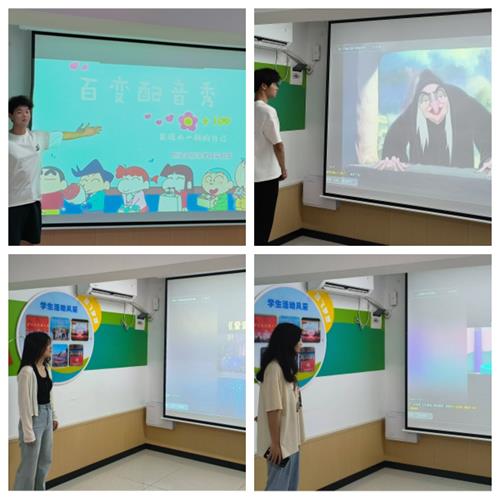 在欢乐模仿环节,同学们纷纷踊跃参与,惟妙惟肖地模仿起自己喜欢的动画角色。有人用搞怪的语调还原了《蜡笔小新》的可爱腔调,还有人用夸张的表演重现了《海绵宝宝》的欢快笑声。现场笑声不断,仿佛真的回到了充满奇幻色彩的动画世界。