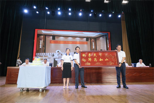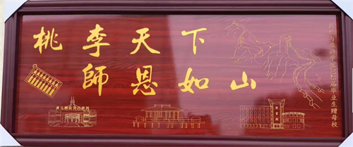 “桃李天下,师恩如山”是母校育人硕果的生动写照,诉说着学子们对老师的崇高敬仰。匾额之上,算盘凝聚财经精粹,长城彰显旅游风华;图书馆曾映照学子们求知的眼眸,翠湖畔的亭子珍藏着青春的欢笑,教学楼是承载着知识的殿堂。匾额祝福着母校如长城巍峨永固,桃李岁岁芬芳;祝福恩师安康,广育天下栋梁。