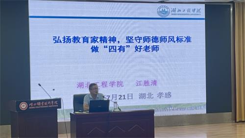 开班仪式结束后,湖北工程学院江胜清教授作题为《弘扬教育家精神,坚守师德师风标准,做“四有”好老师》首场主旨报告。