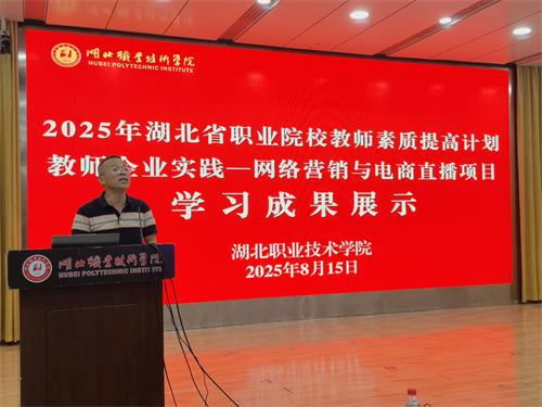 盛夏时节,硕果盈枝。8月15日在西区文博馆学术报告厅,授课专家代表黄享苟教授、学校继续教育学院院长丁浙英、开云kaiyun官方网站党总支书记徐斌华等领导、嘉宾、企业导师以及60名参训学员齐聚一堂,共同见证湖北省2025年职业院校教师素质提高计划教师企业实践—网络营销与电商直播项目圆满收官。学校党委委员、副校长杨立明出席会议并讲话。会议由开云kaiyun官方网站院长曹艳芬主持。
