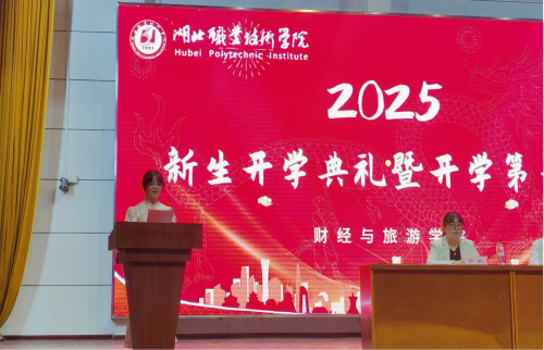 典礼在庄严的国歌声中拉开序幕。院长曹艳芬发表了热情洋溢的致辞。她向全体新生致以最热烈的欢迎与最诚挚的祝福,并详细介绍了学院的基本情况与发展前景。她勉励同学们在新征程上勇于突破自我、打牢根基、矢志追求卓越,努力与优秀者同行,与时代脉搏同频共振,努力实现成人成才的目标。