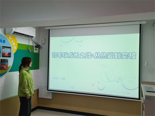 在羽毛球故事分享环节,周熔同学以“羽动青春”为主题,分享了她与羽毛球的不解之缘。这位在球场上挥洒汗水的女孩,从高中时期就对羽毛球“情有独钟”。进入大学后,她先后参加了“星星杯”、“高校杯”等多项赛事,在比赛中屡创佳绩。她特别提到,每一次比赛都是新的起点,通过不断总结比赛经验,她逐步提升了自己的技术水平,也磨练了永不言弃的体育精神。