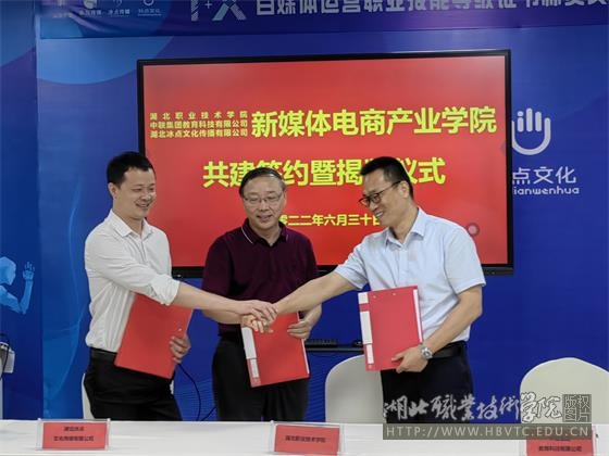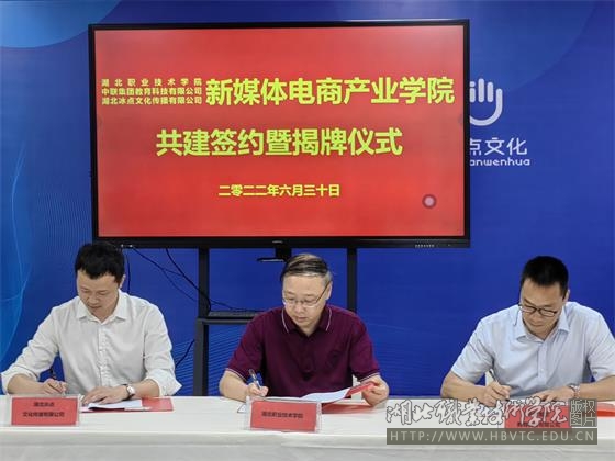 6月30日,新媒体电商产业学院(以下简称产业学院)签约暨揭牌仪式在南校区天工楼顺利举行,产业学院由学校与中联集团教育科技有限公司、湖北冰点文化传播有限公司共同建设。学校副校长胡昌杰,中联集团教育科技有限公司副总裁冯学平,湖北冰点文化传播有限公司总经理熊传兵及学校相关职能部门负责同志、开云kaiyun官方网站师生代表等出席,揭牌仪式由开云kaiyun官方网站院长徐斌华主持。