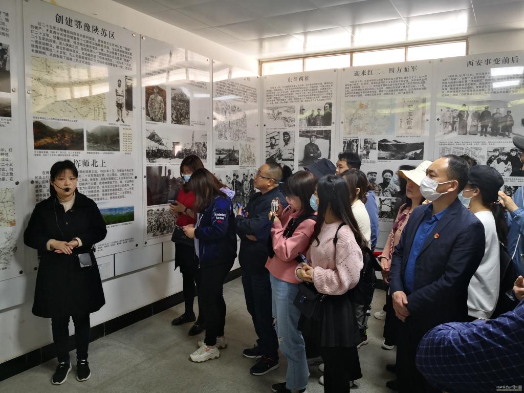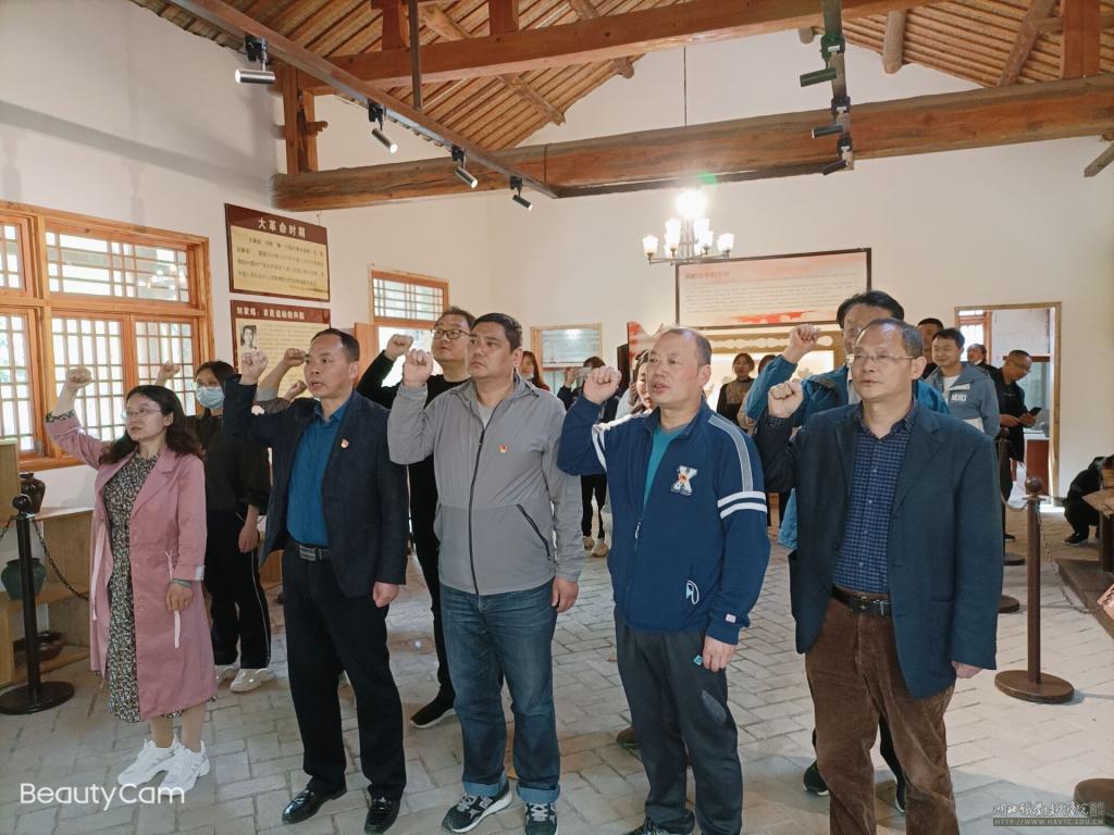 在庄严肃穆的徐海东大将及亲属烈士纪念馆,党员代表和入党积极分子代表怀着无比崇敬的心情,认真学习了徐海东大将的革命事迹,大家向徐海东大将及革命先烈敬献花圈、默哀致敬。在革命文物纪念馆和烈士遗像前,全体党员重温了入党誓词。