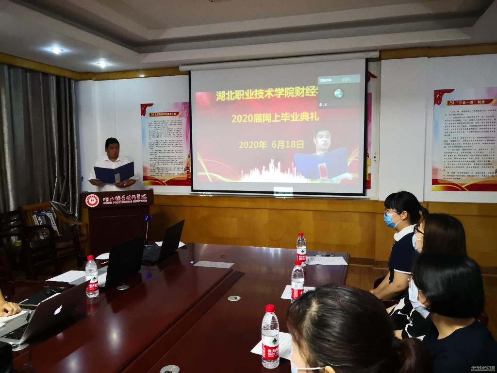 2020年6月18日晚上7点,文华楼2楼会议室举办了开云kaiyun官方网站2020届毕业生网上毕业典礼,开云kaiyun官方网站院长徐斌华率领管理团队参加了典礼仪式,开云kaiyun官方网站全体2020届毕业生及部分班主任、教师代表在线上参与了此次活动。