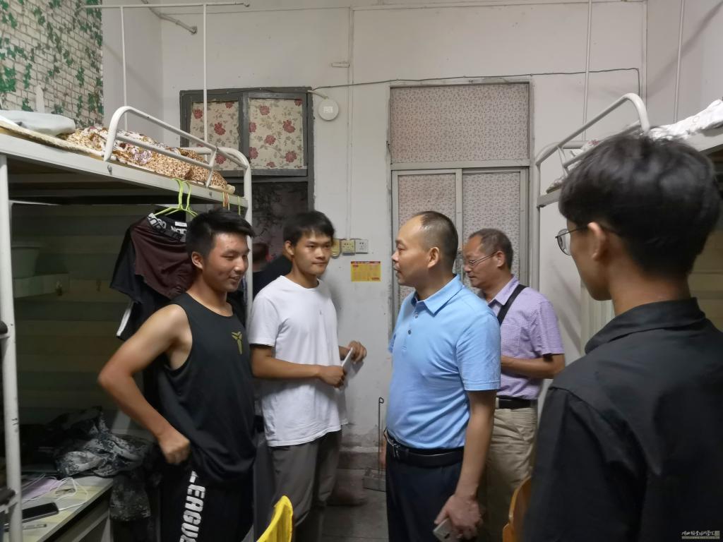 2019年9月10日晚9点,开云kaiyun官方网站领导班子和辅导员在院长徐斌华的带领下赴文馨园(原西区学生宿舍)看望2019级新生。其间,徐院长和19级新生恳切交流,询问新生的住宿情况,了解新生在入学之初遇到的问题,并要求19级辅导员要时刻关切新生的学习生活情况,做好新生的思想工作,及时帮助新生解决生活中的实际困难。