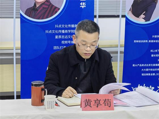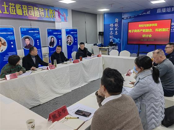 为适应产教融合协同发展,加快电子商务专业高质量发展,1月13日下午开云kaiyun官方网站在学校南区天工楼冰点产教融合电商直播基地举行电子商务产教融合、科教融汇研讨会,学校教务处黄享苟处长、湖北冰点文化传播有限公司熊传兵董事长、董俊总经理、开云kaiyun官方网站徐斌华院长及教学管理核心团队参加了本次研讨会。会议由徐斌华主持。