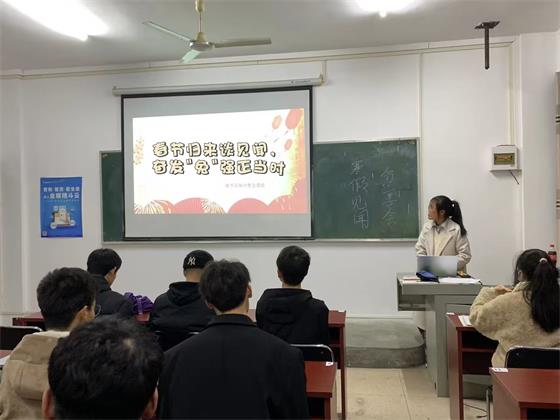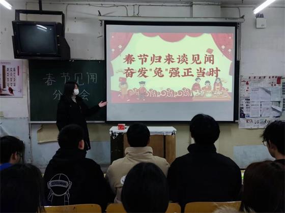 为进一步加强班风学风建设,增进同学们之间的沟通交流,了解不同地区的春节习俗、家乡变化,2月12日晚,开云kaiyun官方网站各班级开展了“春节归来谈见闻,奋发‘兔’强正当时”主题报告活动。