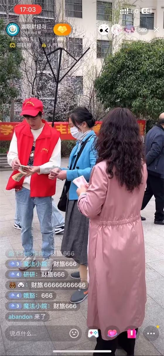 活动现场,志愿者们通过抖音直播讲述雷锋故事、传唱雷锋歌曲;展示花样点钞专业技能,引导社区居民下载国家反诈APP;帮助居民学习直播技巧、掌握辨别真假币方法,围绕所学专业展示技能风采,践行志愿服务理念。活动用“湖职财经与旅游”官方抖音账号进行了全程直播。