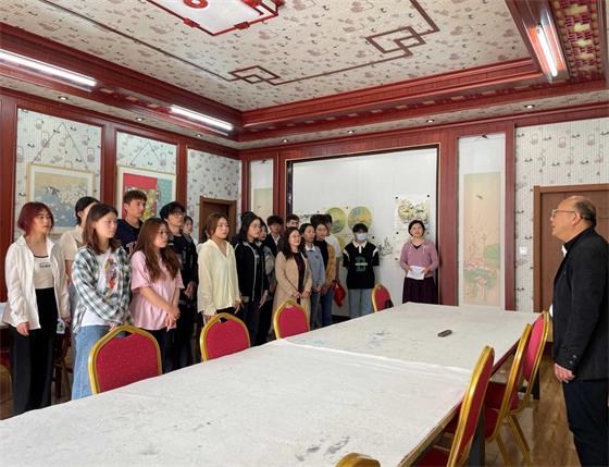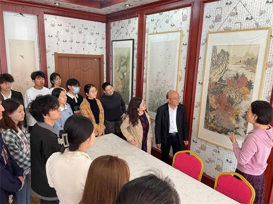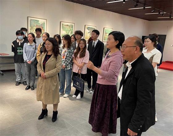 孝感市文化名人、孝感市美术家协会副主席黄明珠热情讲解了工作室内展览的优秀美术作品,以专业的美术素养与简洁明了的语言介绍了《千里江山图》千年不变色的原因以及荣获“湖北省第四届艺术节群星奖”(省政府最高奖)美术作品《红色记忆》背后的创作历程和其中所蕴含的时代红色元素。随后在黄主席带领下我们来到孝感城市文化客厅,欣赏《孝感古八景》等高水平佳作,感受孝感地方文化资源的特色之美,同学们沉浸式体验了一次别开生面且乐趣丛生的艺术之旅,更加深入地理解了艺术与美的内涵,提高了同学们对美的敏感度和鉴赏能力。