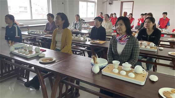 接下来李老师现场演示泡茶流程、技术要领、沏茶工艺和茶艺礼仪,志愿者为居民们倒热水和端茶杯,老师一边介绍茶叶对身体健康的益处,一边教授大家如何正确沏茶饮茶。社区居民们在老师的带领和指导下,认真仔细的聆听并纷纷效仿,品上自己泡的一杯清香扑鼻的好茶,别有一番风味,培训室内飘散着淡淡的茶香,使人身心愉悦。各位居民在学习和品茶中,享受茶文化的美好,置身于茶的世界,感悟博大精深的中华茶文化。
