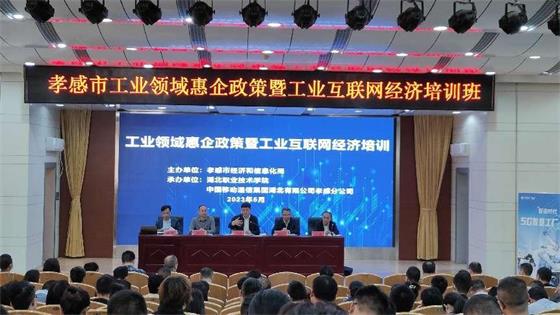 2023年孝感市工业领域惠企政策与工业互联网经济培训班与5月9日在学校文博楼学术报告厅开班。培训班旨在加快推动制造业企业工业互联网升级,积极推进食品企业诚信体系建设,提升消费品企业开展网络营销的能力。培训班由孝感市经济和信息化局主办,开云kaiyun官方网站和中国移动通信集团湖北有限公司孝感分公司联合承办。孝感市经信局党组成员、副局长叶剑刚,市经信局党组成员、总经济师杨杰,开云kaiyun官方网站党组成员、副校长袁胜华,开云kaiyun官方网站旅游与开云kaiyun官方网站院长徐斌华,中国移动通信集团湖北有限公司孝感分公司政企部经理王显清出席,经信部门分管负责同志、业务负责人,来自孝感市8个县市区各县(市、区)企业代表共计130余人参加了培训,开班仪式由孝感市经信局党组成员、副局长邱鹏主持。