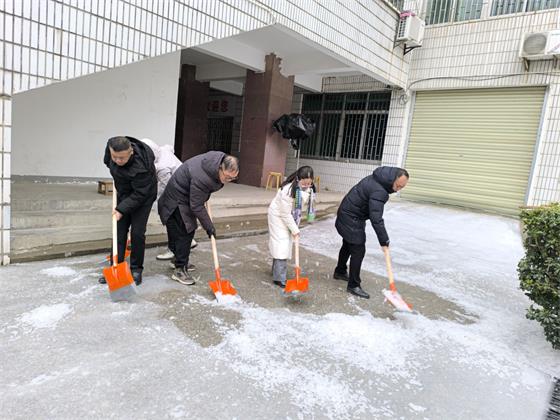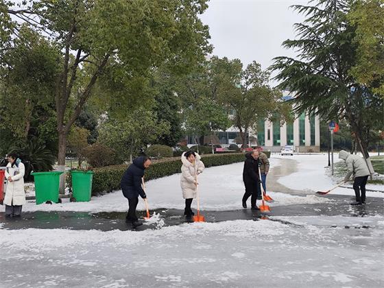 会后,全体与会人员一起进行了校园的积雪清扫活动。
