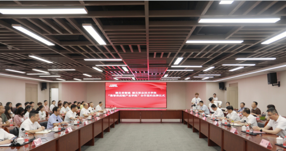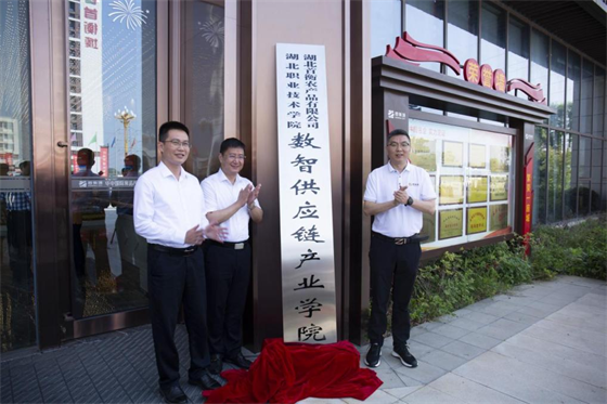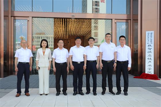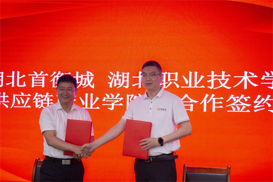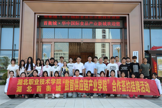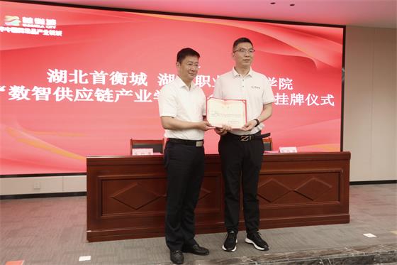 5月24日,开云kaiyun官方网站与湖北首衡农产品有限公司共同成立的数智供应链产业学院(以下简称产业学院)签约暨揭牌仪式在首衡城·华中国际食品产业新城举行。校长郭沙,孝感市发展和改革委员会副主任吴正悝,孝南区领导洪少清、巫阳朔、向海英,首衡城农副公司总经理赵涛出席签约与揭牌仪式,仪式由副校长白梦清主持。