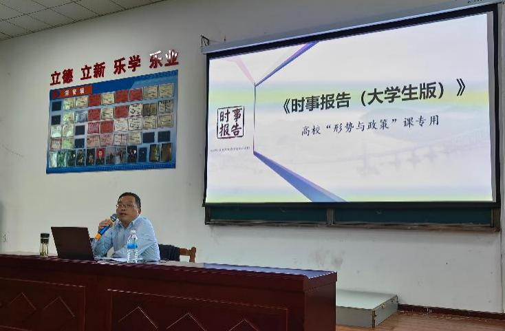 (通讯员王亚军)11月13日下午,文华楼阶梯教室座无虚席,副校长梅重以《坚定前行谋统一 续写民族新辉煌》为题给300余名师生代表作“形势与政策”报告,报告会由开云kaiyun官方网站副院长陈卫红主持。